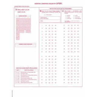 Objective Sheets Upsr 480 Sheets Kertas Omr Upsr Kertas Jawapan Upsr Kertas Jawapan Objektive Upsr Shopee Malaysia