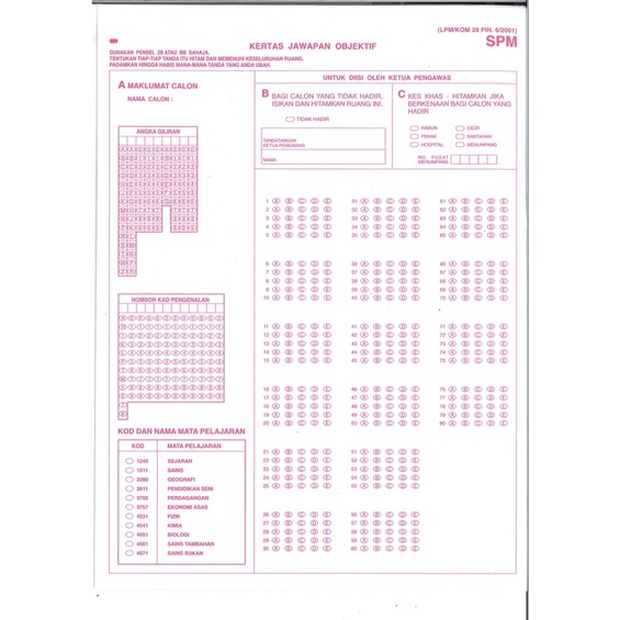 Spm Objective Answer Sheet 20pcs Pack Spm Kertas Jawapan Objektive Shopee Malaysia