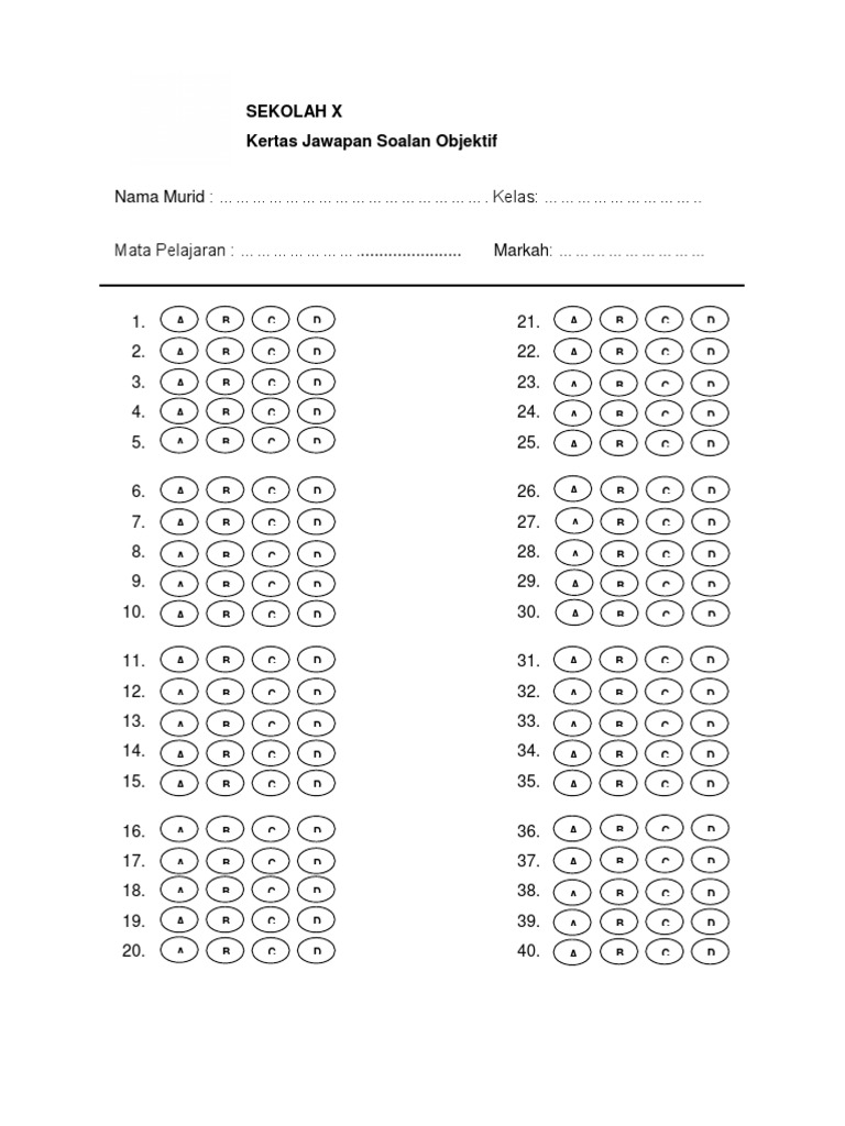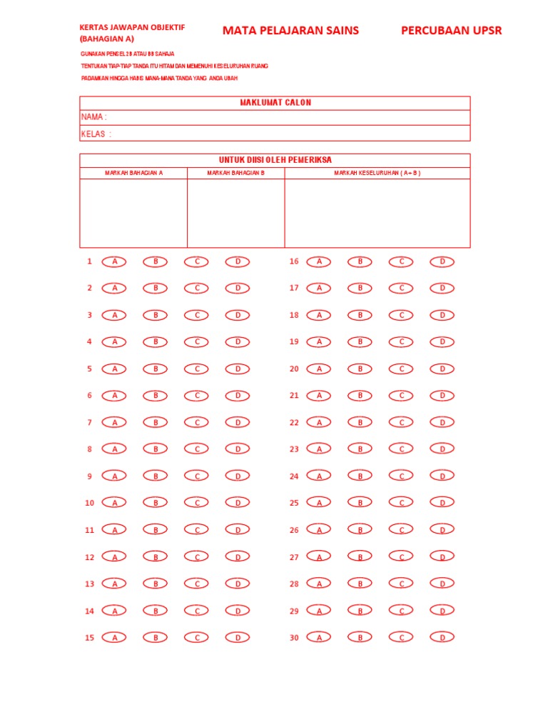 Kertas Jawapan Objektif Upsr Mariodsxz